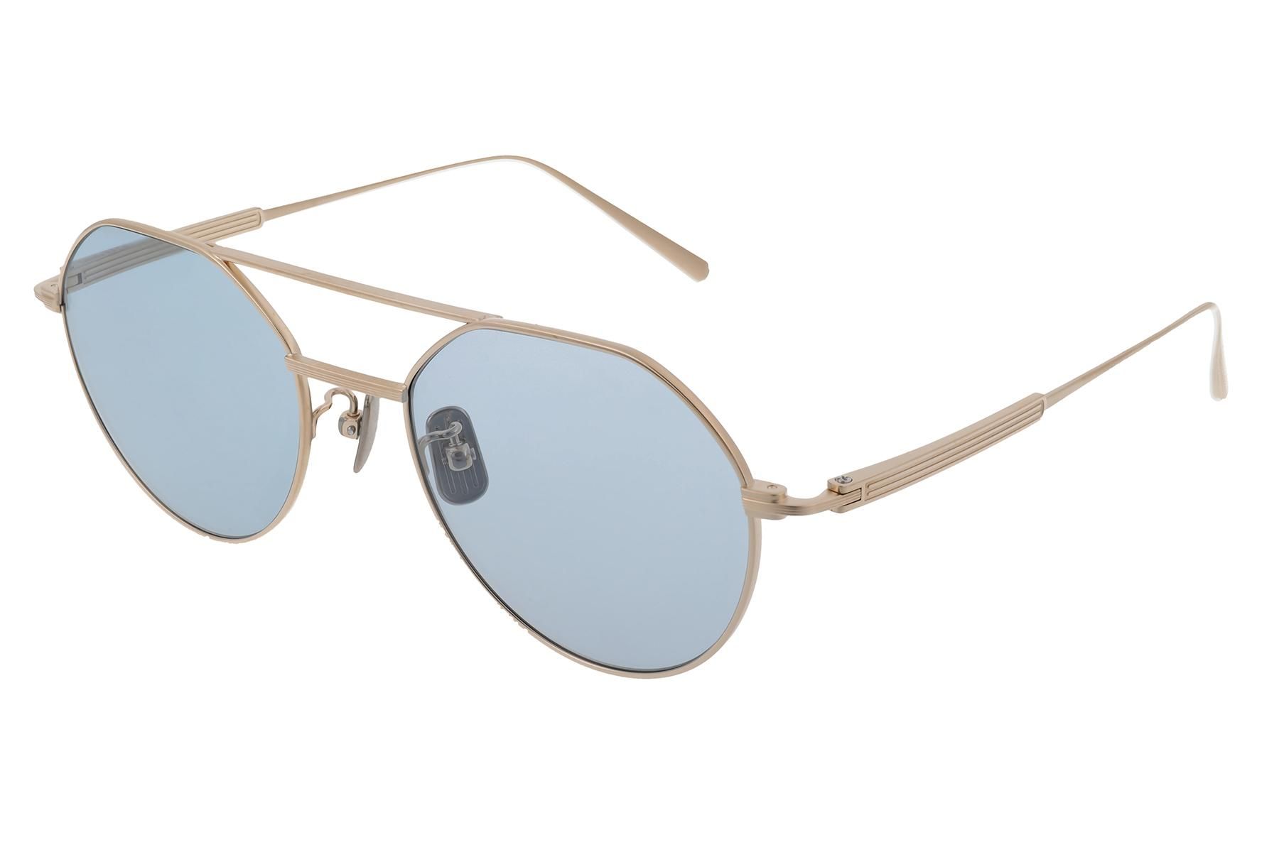 ゆったりしたサイズ感のダブルブリッジフレームです。レンズシェイプは最新のデザインのようなクラウンパントになっており、80年代にデザインされたモデルの復刻とは思えません。当時のサイズやデティールを忠実に再現しつつも、チタン素材にアップデートすることで掛け心地が大幅に向上しています。